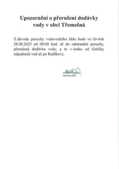 Úvod > Život v obci > Aktuality > 28.08.2025 - přerušení dodávky vody