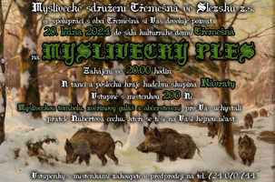 Myslivecké sdružení Třemešná ve Slezsku z.s a obec Třemešná si Vás dovoluje pozvat na tradiční myslivecký ples, který se koná v sobotu 20. 1. 2024 v kulturním domě Třemešná. Zahájení je ve 20:00 hodin. K tanci a poslechu zahraje skupina Návraty. Mysliveckou tombolu, kančí guláš a občerstvení pro hosty uchystali přátelé Hubertova cechu, kteří se těší na Vaši účast.