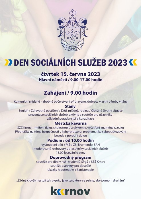 Po pětileté pauze se ve čtvrtek 15. června na Hlavním náměstí opět sejdou poskytovatelé sociálních služeb, kteří působí na území Krnova, aby veřejnosti představili svou činnost. Stane se tak u příležitosti Dne sociálních služeb, jehož program potrvá od 9.00 do 17.00 hodin.