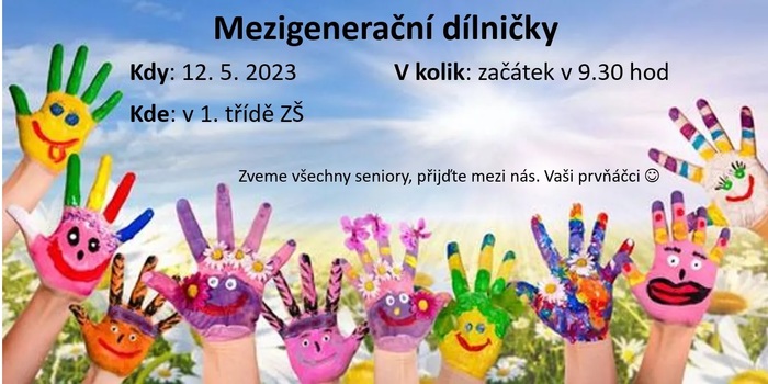 Mezigenerační dílničky u prvňáčků se koná v budově základní školy v 1. třídě dne 12. května 2023 od 9:30 hodin.