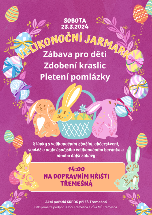 SRPDŠ Třemešná ve spolupráci s obcí Třemešná zve všechny děti, rodiče i prarodiče na připravovanou akci Velikonoční Jarmark.