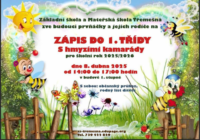 Úvod > Život v obci > Aktuality > Zápis do 1. třídy ZŠ a MŠ Třemešná
