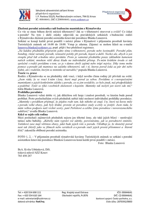 Oblíbená porodní asistentka krnovské porodnice připravila pro nastávající rodiče z Rýmařovska sérii přednášek na téma porod a šestinedělí.
