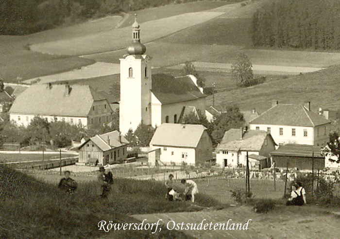 POHLED NA STŘED OBCE S KOSTELEM OD VÝCHODU-1930.jpg